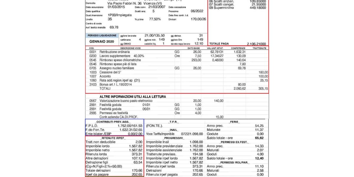 Sulla busta paga puoi verificare una serie di informazioni fondamentali, tra cui: